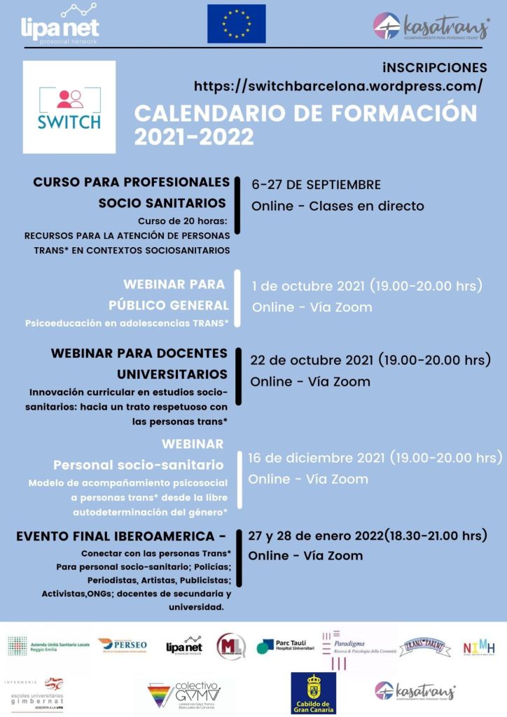 El proyecto europeo SWITCH ofrecerá el 2021 una serie de webinars gratuitos y un curso de 20 horas para profesionales que atienden a apersonas trans* EN CONTEXTOS DE SALUD. ¡Reserva tu plaza en la web del proyecto en castellano!